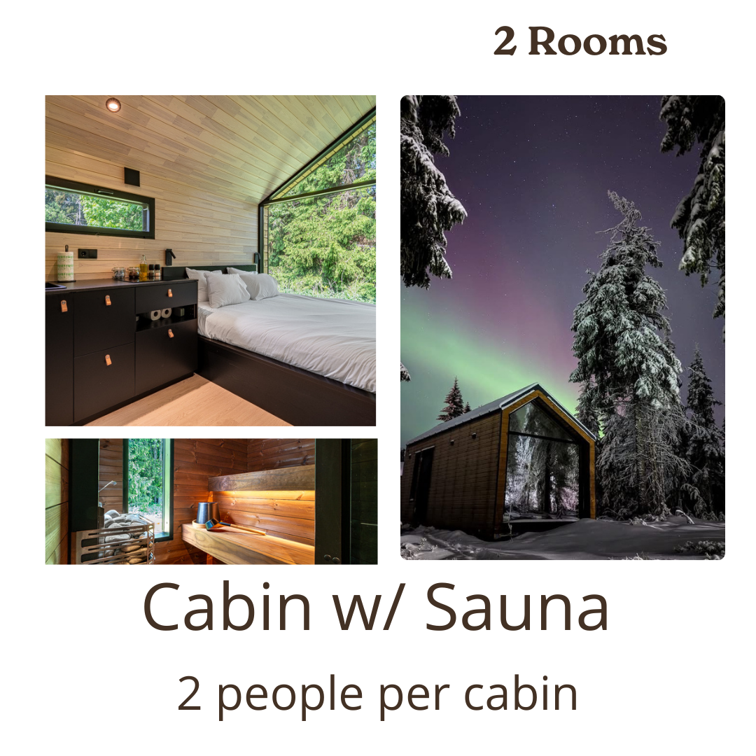 A cozy, private cabin designed for deep rest and warmth during the winter retreat. Each cabin features natural wood interiors, a comfortable sleeping space, and your own private sauna.